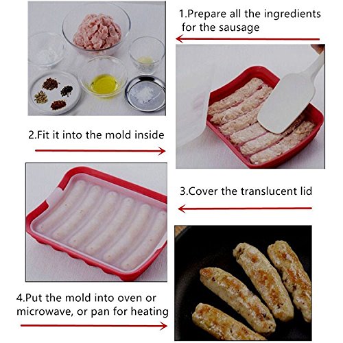 Ouwoow Food Grade Silicone Lazy DIY Sausage Making Mold Sausage Maker (Red)