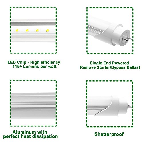- ✔EASY INSTALLATION - T8 4FT linear led tube light bulb is Single End Powered led tubes. Remove Starter/Bypass Ballast.