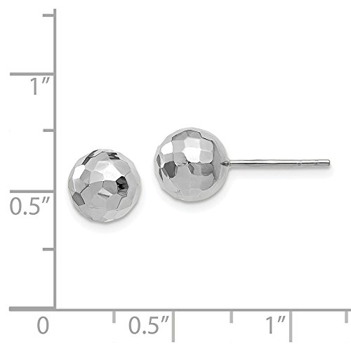 Solid 14k White Gold Polished Faceted Post Earrings (8mm x 8mm)