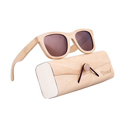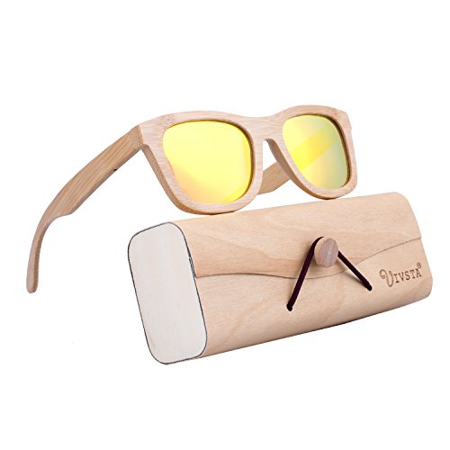 HIGH QUALITY FRAME - Made of made of 100% natura Bamboo, so every pair is different. These sunglasses were constructed using special design techniques in order to ensure durable enough for long time using.