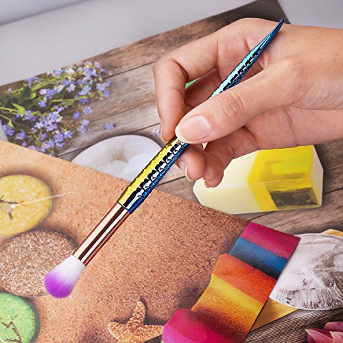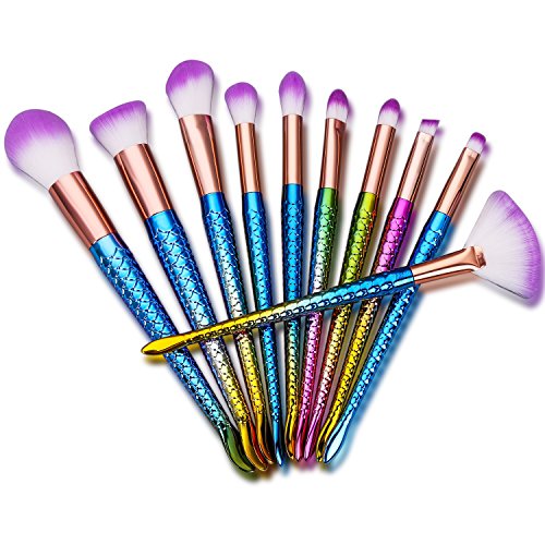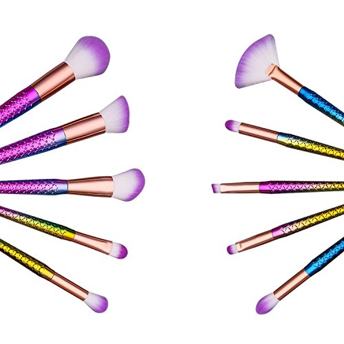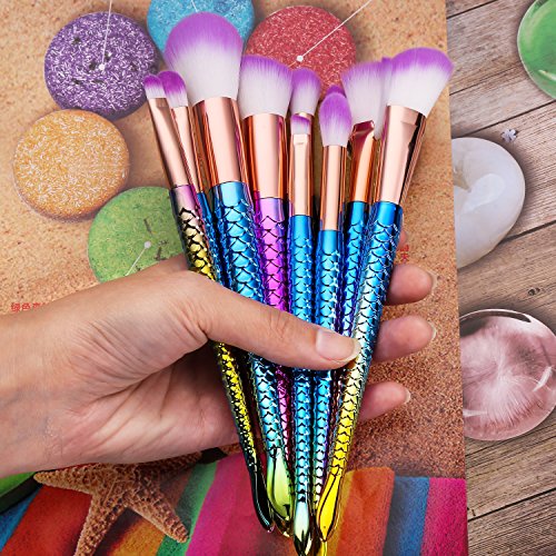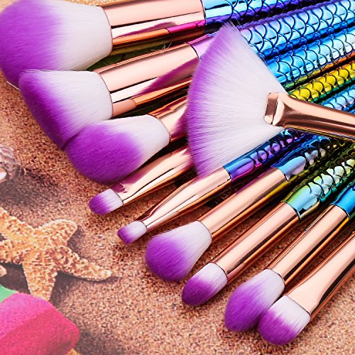 Multi-color Mermaid Makeup Brushes Set 10pcs with Soft Bristles Face Foundation Blush Concealer Contouring Eyeshadow Fan Bevel Brush Kit