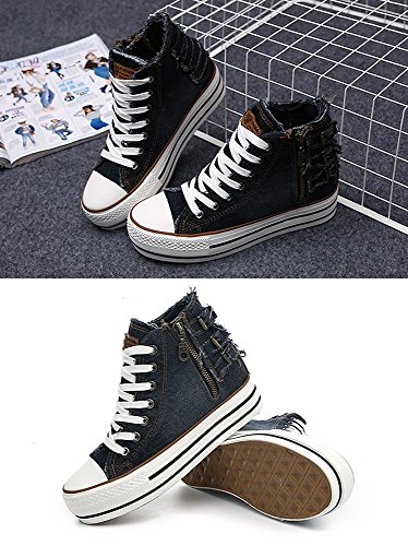 -. Title : レディース デニム地 ハイカット スニーカー 厚底 靴 シューズ 人気 歩きやすい