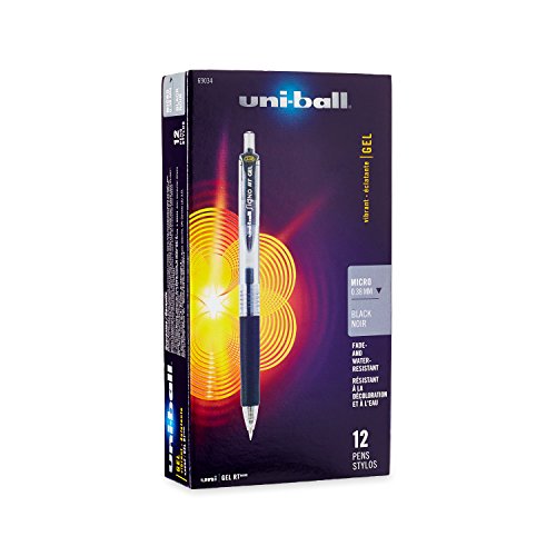Uni-Ball Gel Retractable Pen, Micro Point, Black Ink, 12-Count