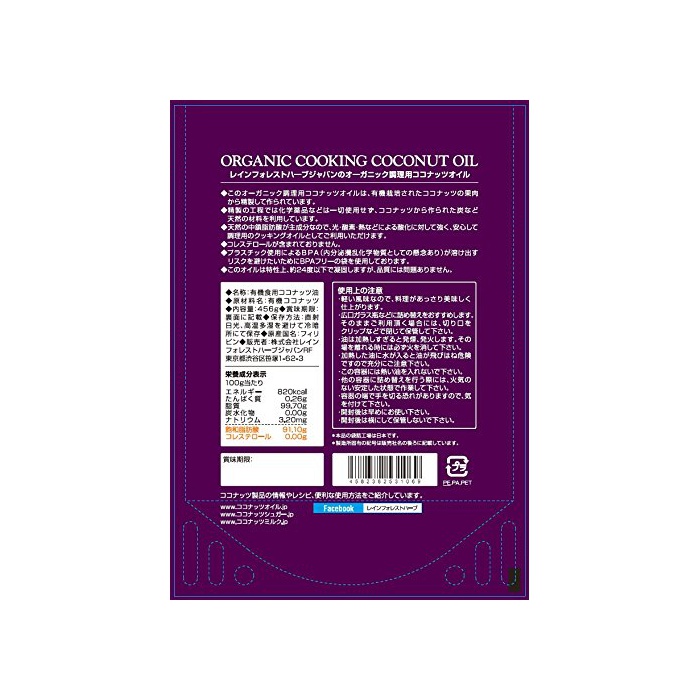 BPA(비스 phenolicA:내분비 교란 화학 물질로서의 염려)를 피하기 위해서(때문에),BPA프리의 대를 사용 하고 있습니다. 오일의 성질상,약24도 미만에 희게 응고 하겠습니다만 품질에는 전혀 문제 없습니다.이 오거닉 조리용 코코넛 오일(JAS certified organic cooking coconut oil)서는 NO AROM이므로,반대로,코코넛 오일 독특한 맛이나 향기가 서투른 분으로는 기뻐해집니다.