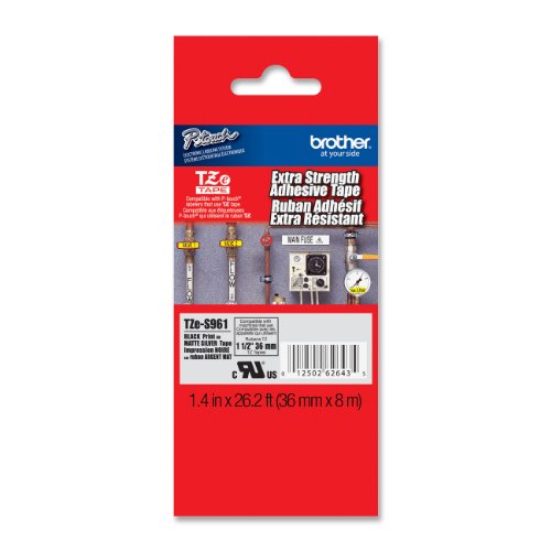 -. Title : Brother Laminated Extra-Strength Black on Matte Silver 1 1/2 Inch Tape - Retail Packaging (TZeS961) - Retail Packaging