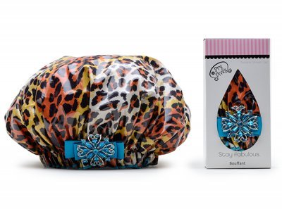 Dry Divas Designer Shower Cap For Women - Washable, Reusable - Large Bouffant Cap With Vintage Jeweled Brooch (Divah Cheetah)