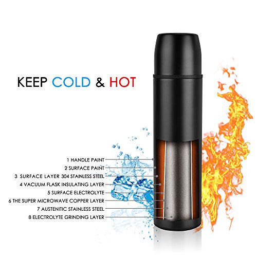 【BPA FREE & GOOD FOR HEALTH】Safe materials for children and adults. We can guarantee this stainless steel coffee flask is non-toxic. Really BPA free and ECO friendly travel mug. We take responsible for your health. Made from high quality excellent texture double wall stainless steel 304 and has food grade pp plastics cap, the cap can be opened to put tea leaf or ice cubes in easily.
