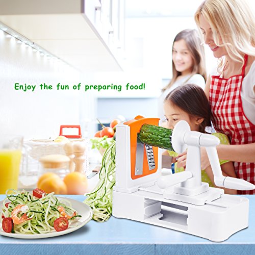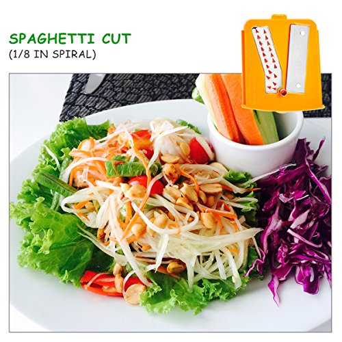 Ideal Tool In the Kitchen Forged for 304 hardened stainless steel , this professional spiral vegetable slicer is designed to help you slice, shredding , dice like never before. Highly Versatile - Perfect for making long vegetable strands for low carb, healthy vegetable meals quickly. SAVE TIME from slicing, dicing and conventional julienning methods, crave for vegetables and make your veggies still keep nutrients and minerals alive