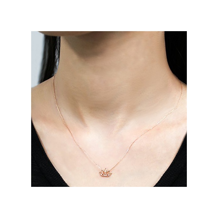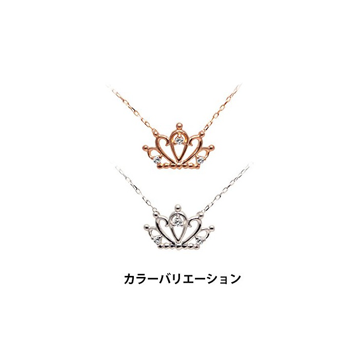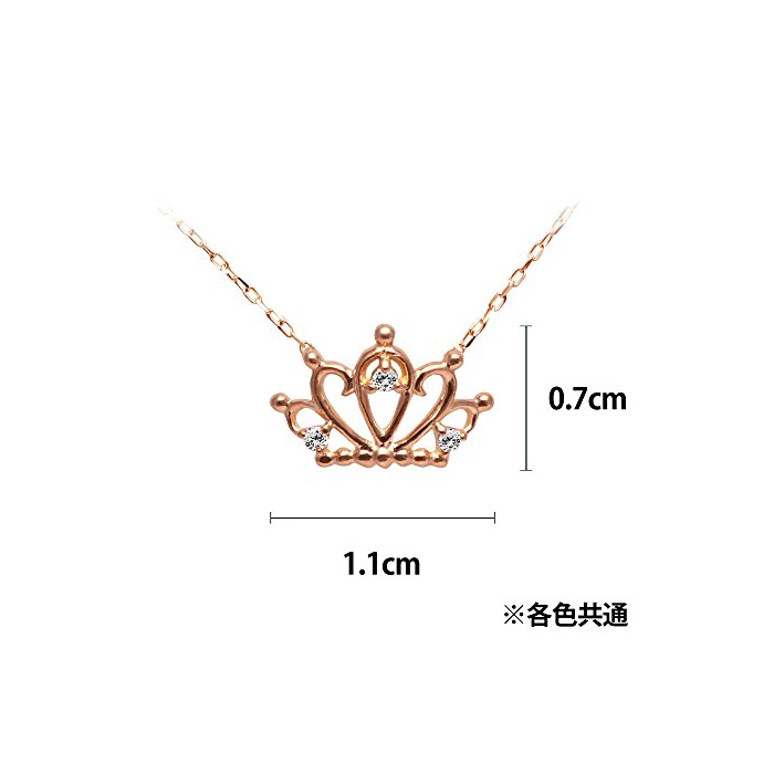 [《갸로디디아만테》] CHIARO DI DIAMANTE K10핑크 골드×다이아몬드 크라운 펜던트 넥크리스 CHD0052