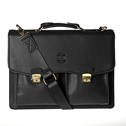 Binding : Apparel Product Description Organize your important documents in the Hero Eisenhower Briefcase. Made from embrodermic materials, the briefcase withstands rugged use and is hypoallergenic. The insides are lined with nylon for added strength. There are two large compartments to safely store your laptop and documents. Pen and mobile phone holders in one of these chambers make it convenient to store these things. The briefcase has two front pockets with easily accessible with push-button closures for your smaller essentials. The back has a zippered sleeve, giving you added space. Use the securely bolted top handle to carry this briefcase. It also has an adjustable, removable multi-weave nylon shoulder strap. 0