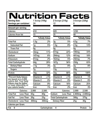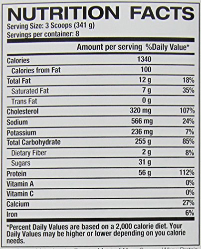 Product Description Incredibulk is jam-packed with 1330 deliciously-rich calories designed to maximize your tireless efforts in the gym and at the kitchen table. 0