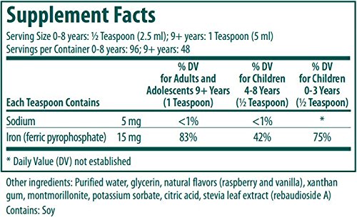 Each teaspoon serving of Liquid Iron provides 15 mg of iron from colloidal ferric pyrophosphate, a highly bioavailable form of iron. Liquid Iron Complex has a delicious natural raspberry vanilla flavour, and is gluten-free, dairy-free, and ideal for vegans. High Bioavailability. Colloidal Iron Supplement. Helps to form red blood cells and helps in their proper function. Helps to prevent iron deficiency anaemia.Feature