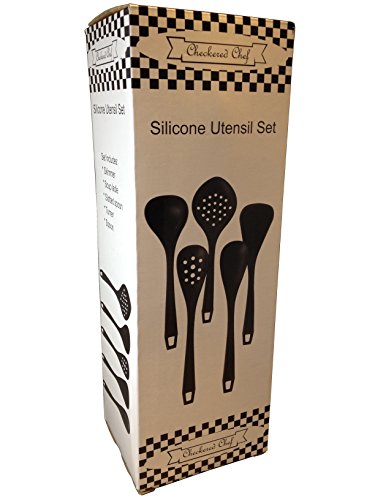 -. Title : Cooking Utensils,Checkered Chef Silicone Utensil Set. Five Piece Bundle Perfect For Nonstick Cookware And Every Kitchen. Best Quality Black Silicone Dishwasher Safe.