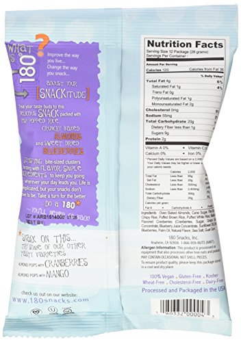-. Title : 180 Snacks Almond Rice Pops with Sweet Blueberry in 1-ounce Pouches (Pack of 12)