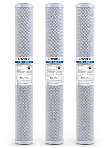 Hydronix HX-CB-25-2010/3 Universal Nsf Coconut Activated Carbon Block Water Filter, 2.5" x 20"-10 Micron-3 Pack, White