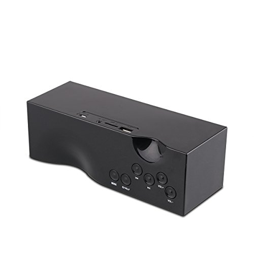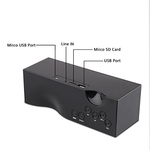 -. Feature : ◆Multiple interfaces allow the music to be played either through bluetooth, aux, microSD or a TF card, or even a radio. / ◆Compact Wireless bluetooth speaker loud sound: Powerful 52mm diameter speakers, abundant stereo audio and loud sound in such a small portable size. / ◆Built-in Rechargeable Battery for up to 5 hours of playtime. Built-in microphone for hands-free speaker phone calling. Built-in fine tunable FM Radio with LED display.with Bluetooth 3.0 Technology that offers you instantaneous connection and longer bluetooth connectivity range more than 10 meters / ◆The elegant Portable Wireless Speakers design, in classic simplicity, which fit to home fantastically, offer you the beautiful enjoying not only for ears but also for eyes! / ◆Easy connect to Computer, Laptop, PCs,Tablets, iMac/iPhone/iPad/iPod, via Wireless Bluetooth or 3.5mm Audio Cable.