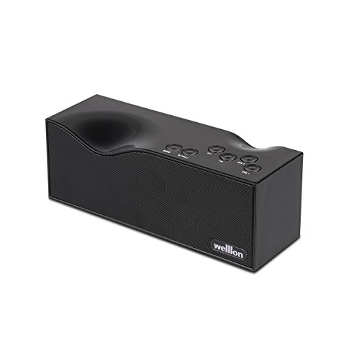 -. Title : Welllon Bluetooth Speaker with Built-in Mic and FM Radio, Dual-Driver Portable Bluetooth Speakers with Low Harmonic Distortion and Superior Sound - Black
