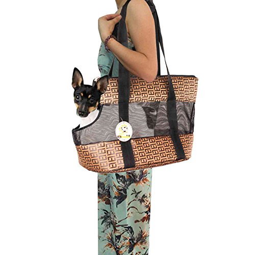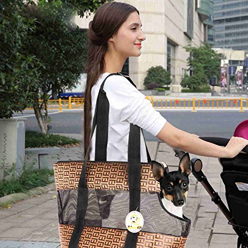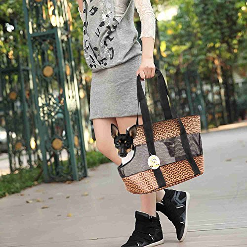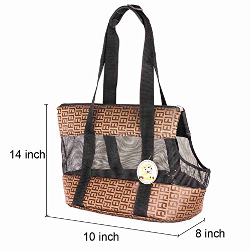 -. Feature : PREMIUM QUALITY & HEAVY DUTY: This travel pet hand bag, made of high quality brown pattern Polyester with PU coating filling with foam and black polyester inner guarantees top durability. / SAFE & COMFORTABLE: The ergonomic zipper at the top ensures easy access to the doggy or kitten. The mesh in the middle offers optimum ventilation. The comfortable elastic neck rest prevents your pet from channelling outside. / LIGHTWEIGHT & CONVENIENTLY PORTABLE: This stylish pet carrier pouch is designed with anti-slipping shoulder PC at the top of the handle and weighing just 0.38kg/ 0.83lb. Fold it to store it safely. / DURABLE & RELIABLE: With a size of L14''XW8''X H10'', this ergonomic pet carrier purse is ideal for small dogs or cats up to 4kg/ 8.8lb, although its weight bearing capability is over 15kg/33lb. / SAFE SHIPMENT: Your travel pet carrier bag is safely delivered from USA and will be sent to you with the maximum care that ensures safe packaging and shipment.