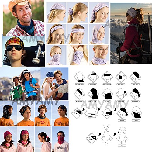 1*headband=16+different ways,save your money,at the same time you can use to scarf,mask,hip-pop , cap,ninja,kitchener,pirate,balaclava,robber,headwrap,hair bands,wrist strap and so on.