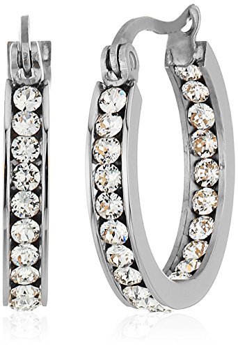 Stainless Steel Created with Swarovski Crystals Hoop Earrings