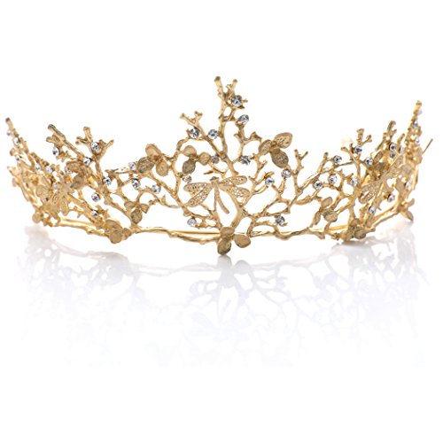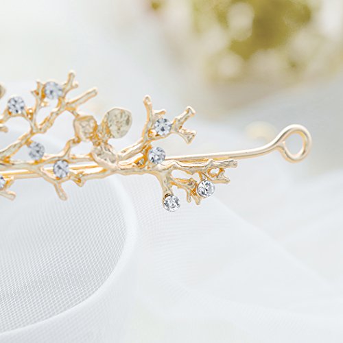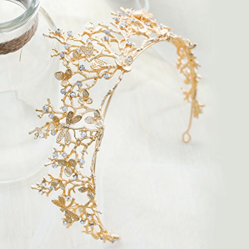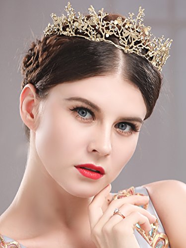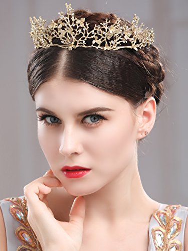 Yean Wedding Crown and Tiara Flower Bridal Princess Queen Crown Baroque Vintage Rhinestone Headband for Bride and Bridesmaid Gold