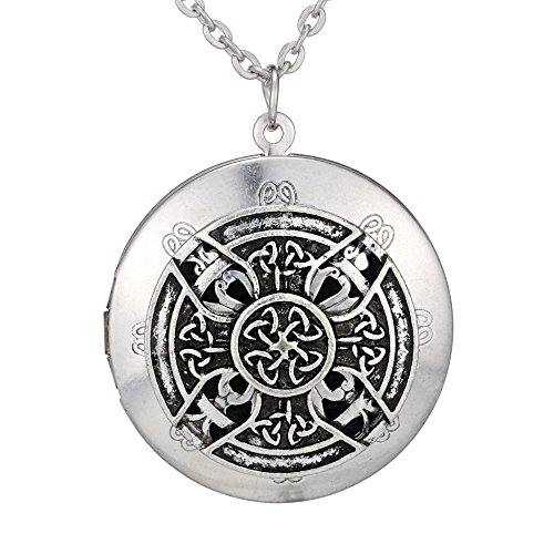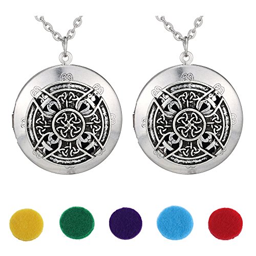 2pcs Antique Silver Celtics Knots Cross Pendant Celtics Locket Aromatherapy Essential Oil Diffuser Locket Necklace With 5pcs Refill Pads Gift Pouch
