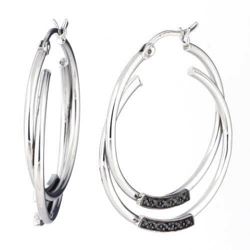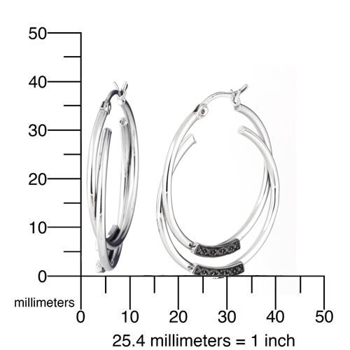 Sterling Silver Black Diamond Hoop Earrings (1/10 CT). The Black Diamonds are Heat Treated. The minimum total diamond carat weight is 0.08 CT. This product comes with a 90 day seller warranty.Feature