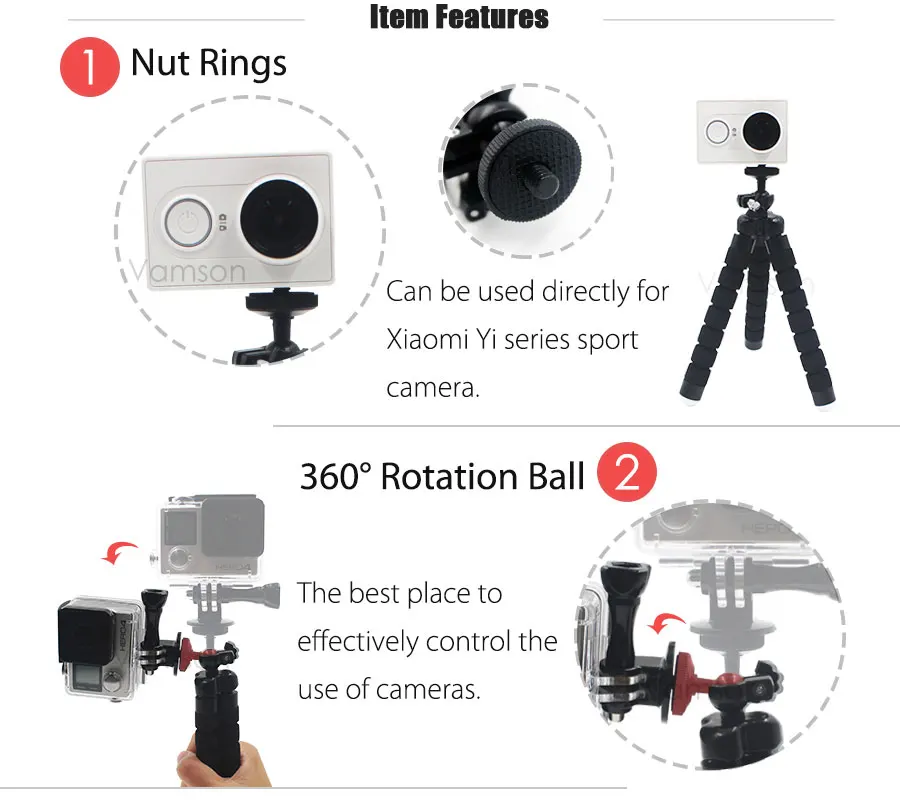 Compatible Action Camera Brand:SOOCOO,EKEN,SONY,NIKON,Sjcam,Garmin,GoPro