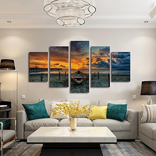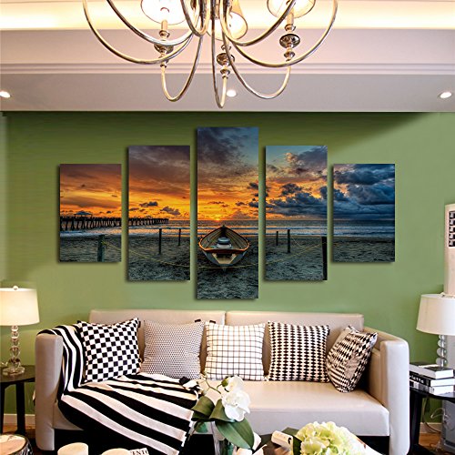 -. Title : GEVES Framed 5 Panels Hd Seaview with Shiptop-rated Canvas P.R.Int Painting for Decoration Art P.R.Ints for Wall Ready to Hang
