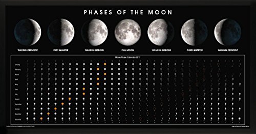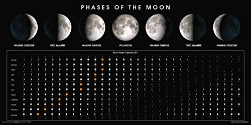 This 12 by 24 inch print features formation, description and images about the different phases of the moon throughout calendar year.