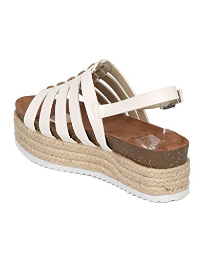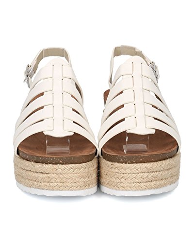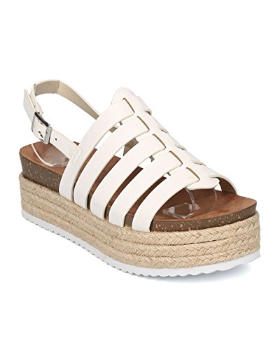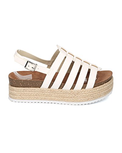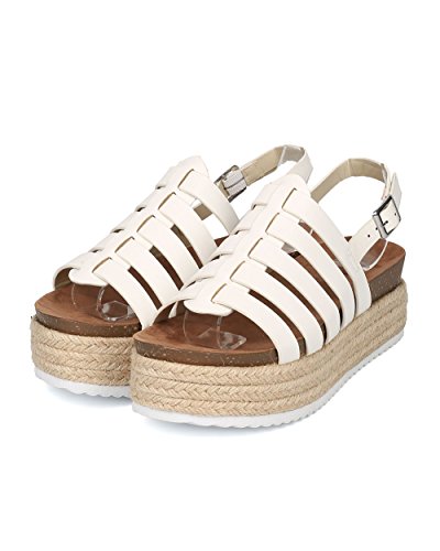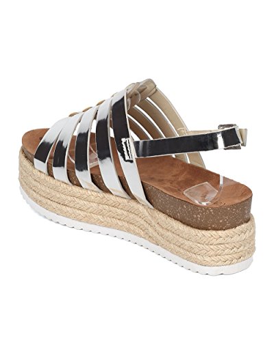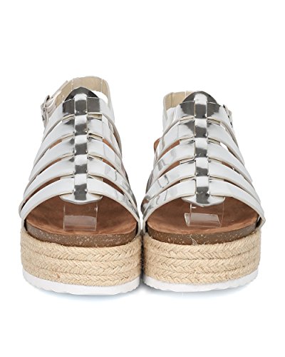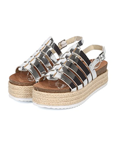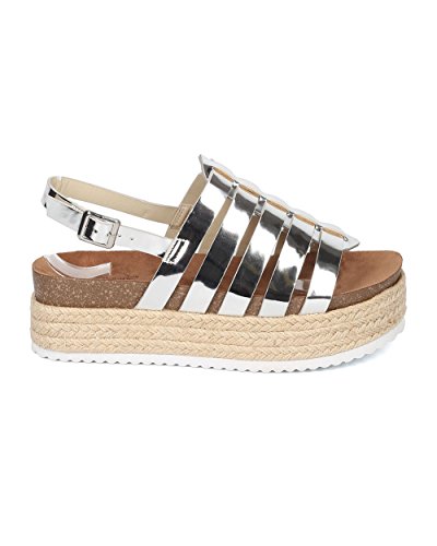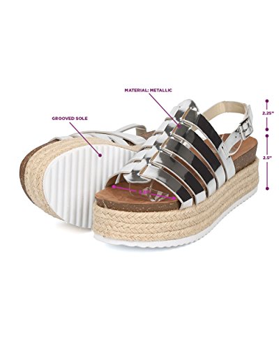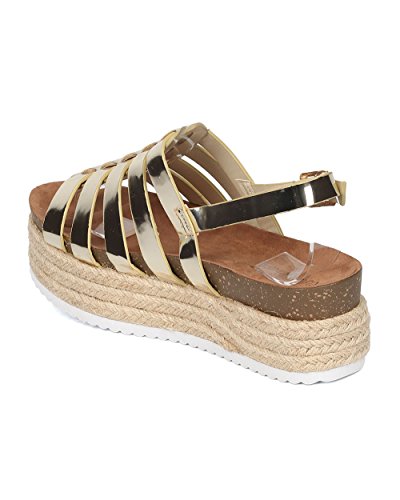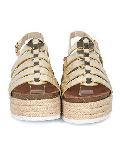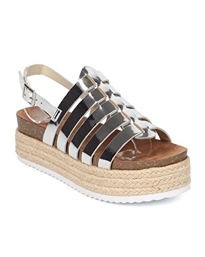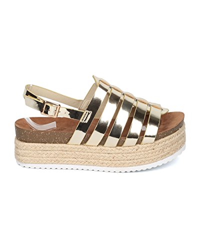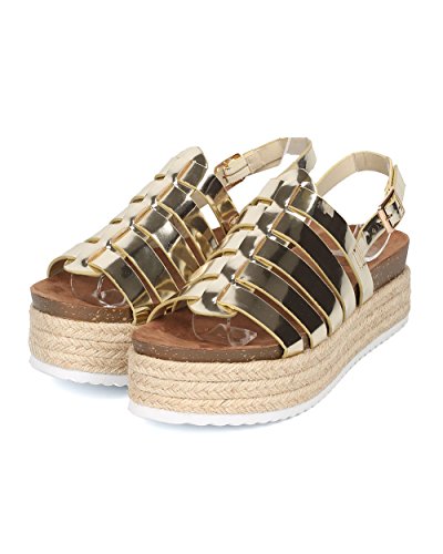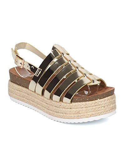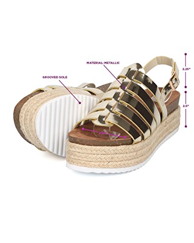 Indulge Women Metallic Espadrille Fisherman Sandal - Flatform Slingback Sandal - Caged Platform...