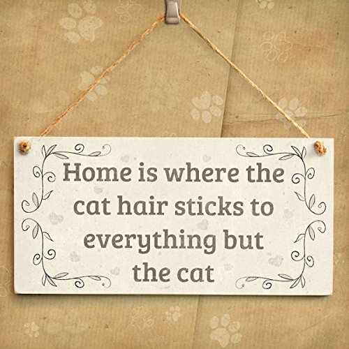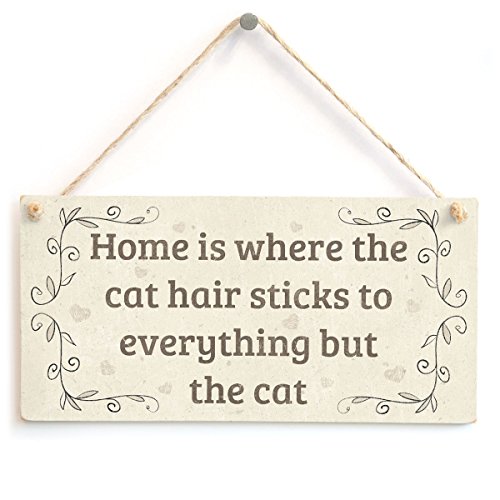 Meijiafei Home Is Where The Cat Hair Sticks To Everything But The Cat - Beautiful Home Accessory Gift Sign For Cat Owners 10"x5"