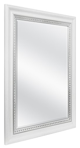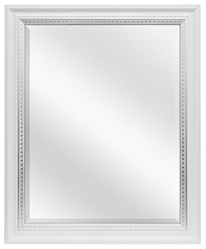 MCS 22x28 Inch Wall Mirror with Embossed Accent, 27x33 Inch Overall Size, White (83049)