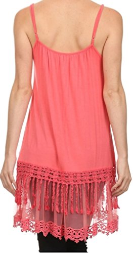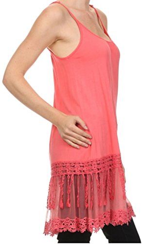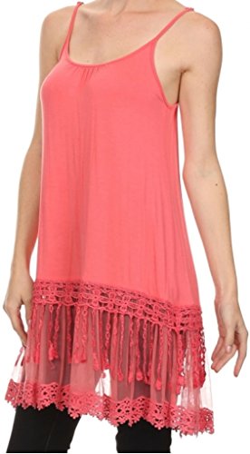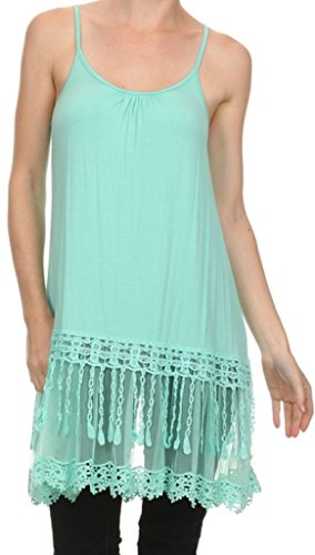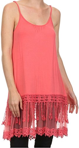 Product Description This vintage-inspired cami dress with lace and tulle trim at hem has adjustable spaghetti straps and a flowy fit. Where it alone or layered with one of our lacey vests, tops or jackets for an eye-catching look. Machine wash cold. Tumble dry low. 0