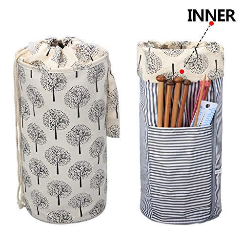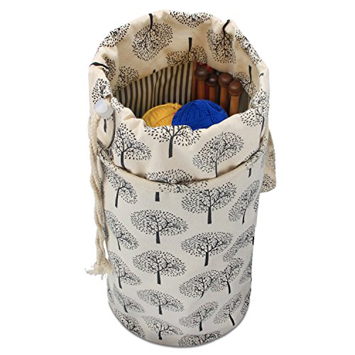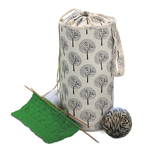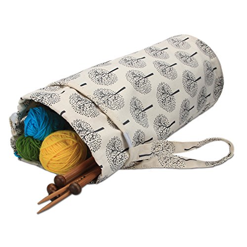 Luxja Yarn Storage Bag, Portable Knitting Bag for Yarn Skeins, Crochet Hooks, Knitting Needles (up to 14 Inches) and Other Small Accessories (Large / Trees)