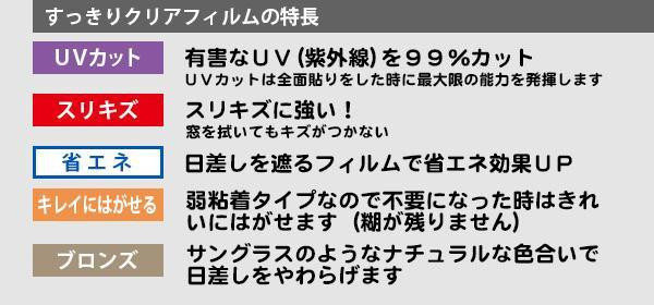 有害なUV(紫外線)を99.5%カット。サングラスのようなナチュラルな色合いで日差しをやわらげ、省エネ効果もUPします。スリキズに強く、不要になった時はきれいにはがせます。弱粘着タイプなので糊が残りません。 |