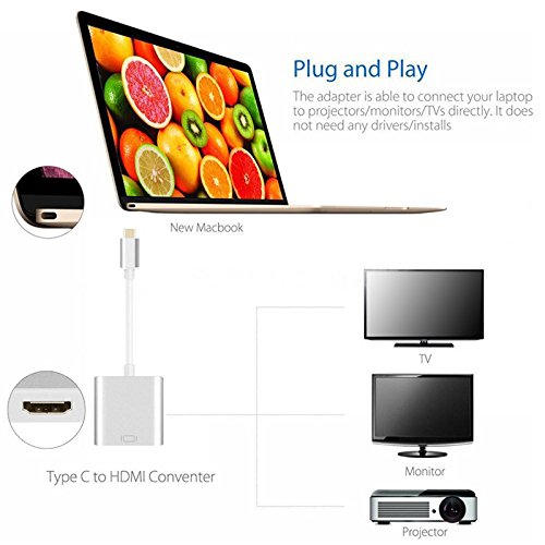 This USB 3.1 Type C to HDMI adapter is a perfect companion for your 2015 New Apple Macbook 12-Inch laptop, Chromebook Pixel, Microsoft Lumia 950 / 950XL and more, which let you connect your laptop and phone with type C port to any HDMI-enabled display.