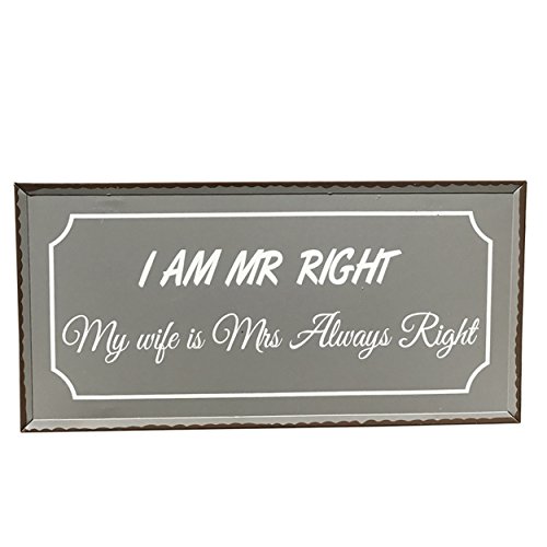 I AM MR RIGHT, MY WIFE IS MRS ALWAYS RIGHT, Word Art Plaque, Rustic Style Sign, Distressed Gray with White Text, Brown Edges, 15 ¾ W x 8 H Inches, By Whole House Worlds