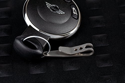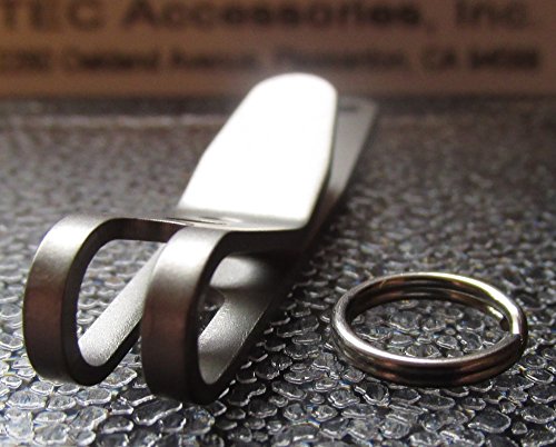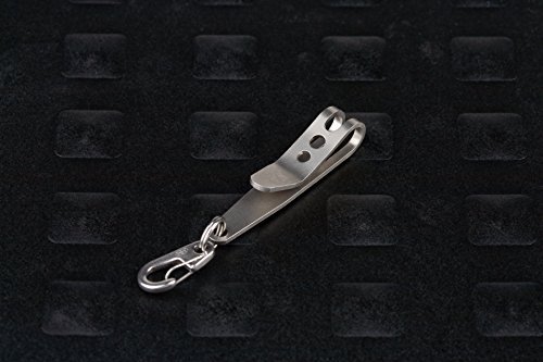 Enter the P-7. It clips onto the top edge of your pocket, allowing anything clipped to it to be suspended part way into your pocket. So you can put large items like your key fob onto the P-7 and keep them separate from the rest of the items at the bottom of your pocket. No need to pull the fob out of your pocket, just let it hang there! And the clip is very discrete, only the outer fold of the clip is visible so it's barely noticeable. The P-7 Suspension Clip is made of spring tempered stainless steel, bead blasted to a uniform matte finish. It also includes a stainless steel split ring to allow for attachment of items. 0