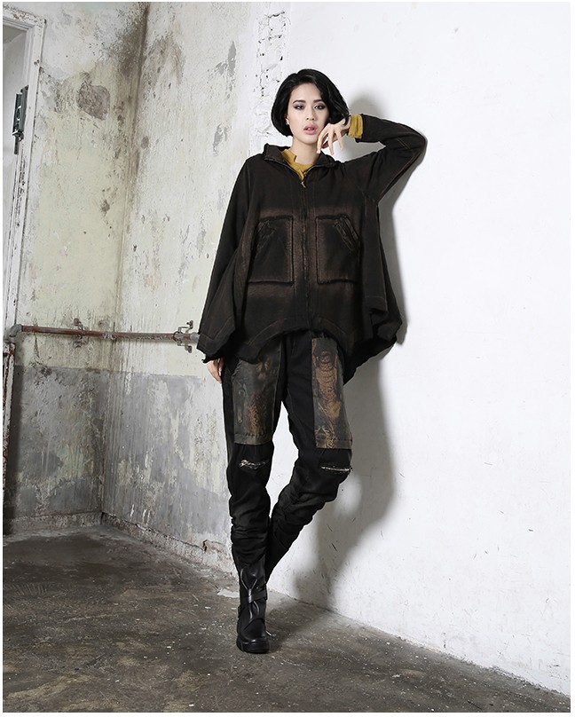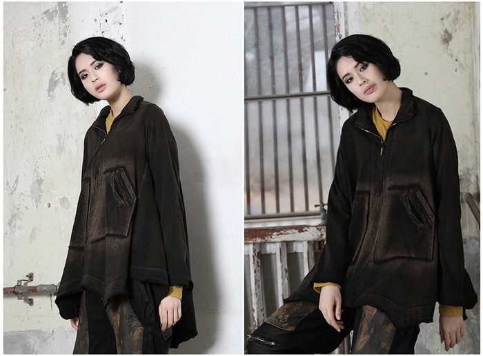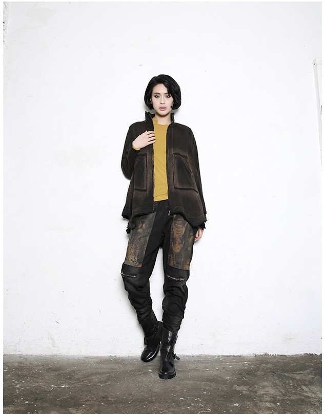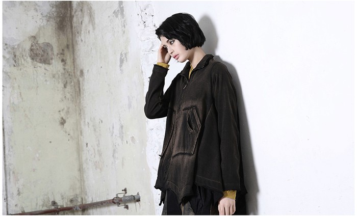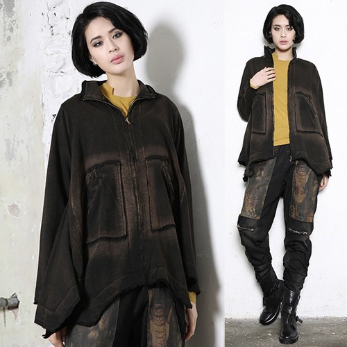 商品名:ジャケット レディース ハーフ丈 ジップアップ 個性的 ウォッシングカラー 秋 冬 2017 モード系 個性的 40代 ファッション