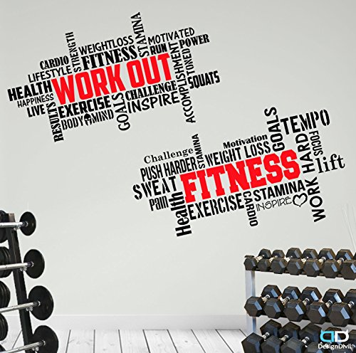 Workout Word cloud Decal (black/red) Size 1mtr x 57cm high(39'' x 22'')