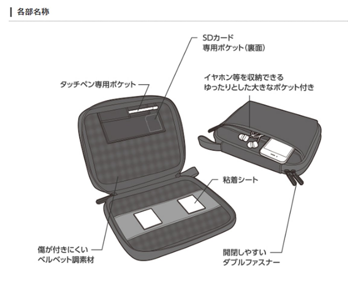 ■ A large zipper pocket that can store accessories such as earphones collectively at the front of the case is attached.
