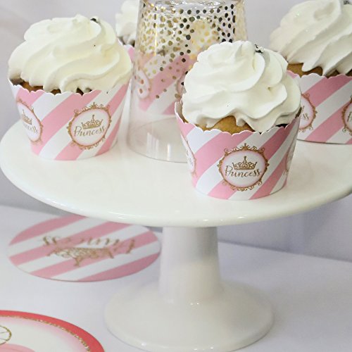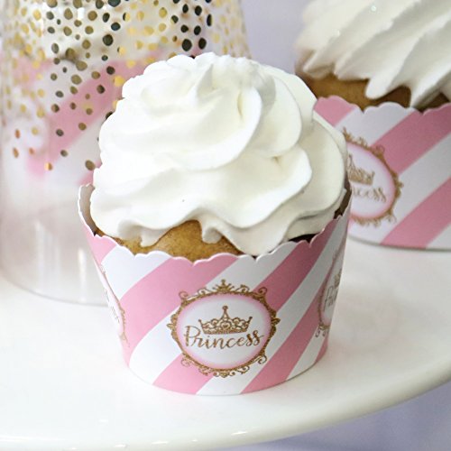 Little Princess Crown - Pink and Gold Princess Baby Shower or Birthday Party Cupcake Wrappers - Set of 12