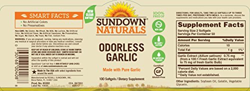 -. Title : Sundown Naturals Odorless Pure Garlic, 100 Softgels (Pack of 3)