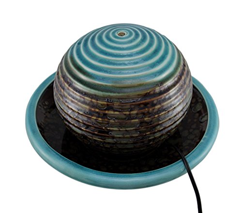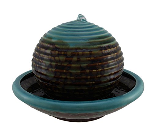Ceramic Indoor Fountains Burnt Stained Blue Porcelain Floating Ball In Bowl Tabletop Fountain 12 X 8.5 X 12 Inches Turquoise