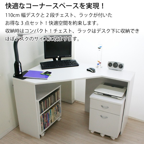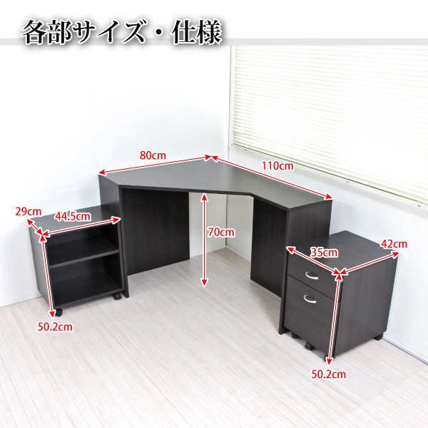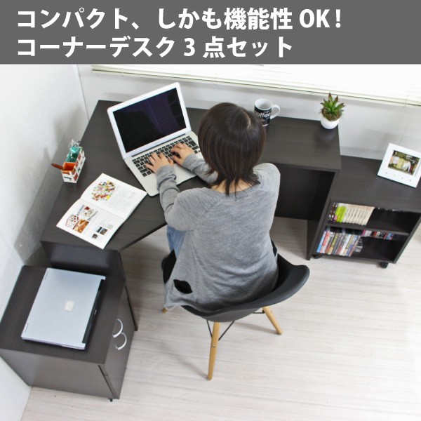 人気の コーナーデスク 3点セット ハイ&ロー