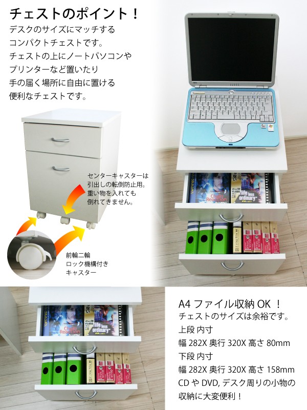 キャスター付2段チェスト+キャスター付ラックの3点セット