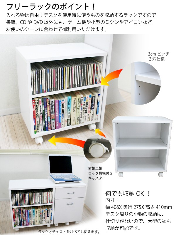 ■デスク下のスペースにはチェストとラックが収納できます。