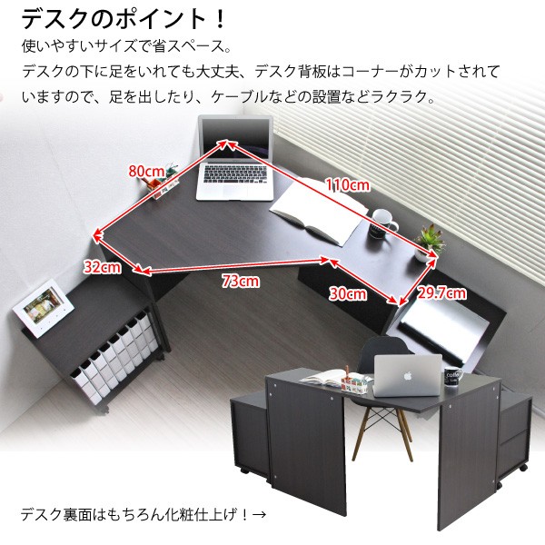 デスク/幅110×向かって左奥行80、向かって右奥行29.7×高70(cm)