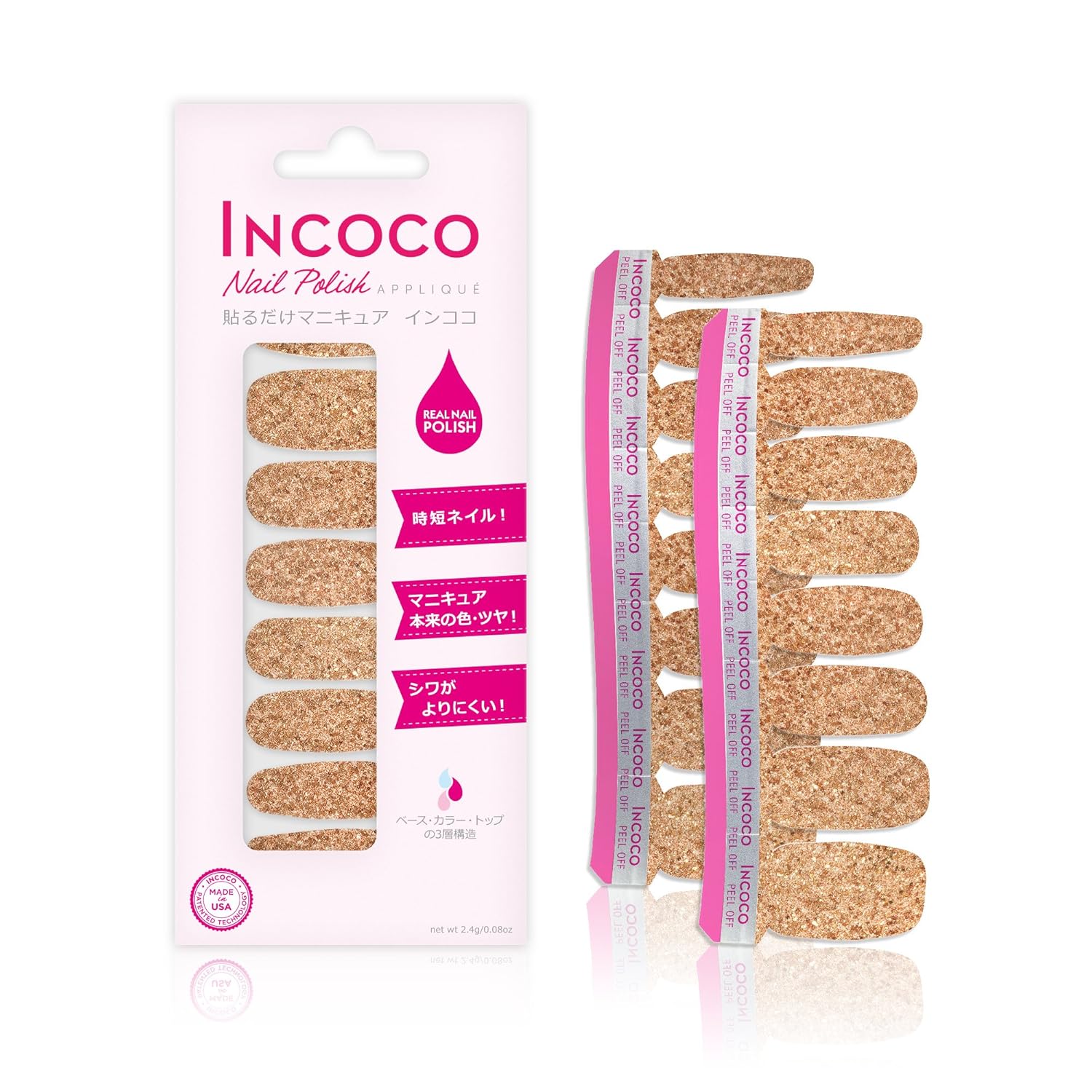アメリカ生まれの貼るだけマニキュア 「インココ・ネイル・ポリッシュ・アップリケ」(Incoco)はマニキュア成分でできたシートタイプのマニキュアです。乾かす時間不要、塗りムラ知らず、且つマニキュアならではの発色やツヤを楽しめます。インココでまったく新しいマニキュア体験をしてみませんか!黒や白のシンプルコーデのアクセントにオススメです!ゴールドは肌なじみも良く、さまざまなシーンに使いやすいです!